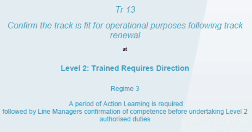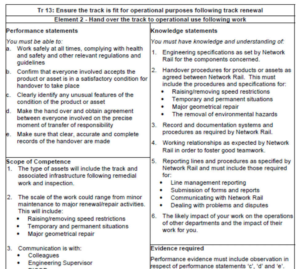 A skills assessor or competence assessor needs to complete a recertification event for an individual when they have reached the end of their validity period for their certification. The validity period for track hand back at Maya Rail is 36 months.